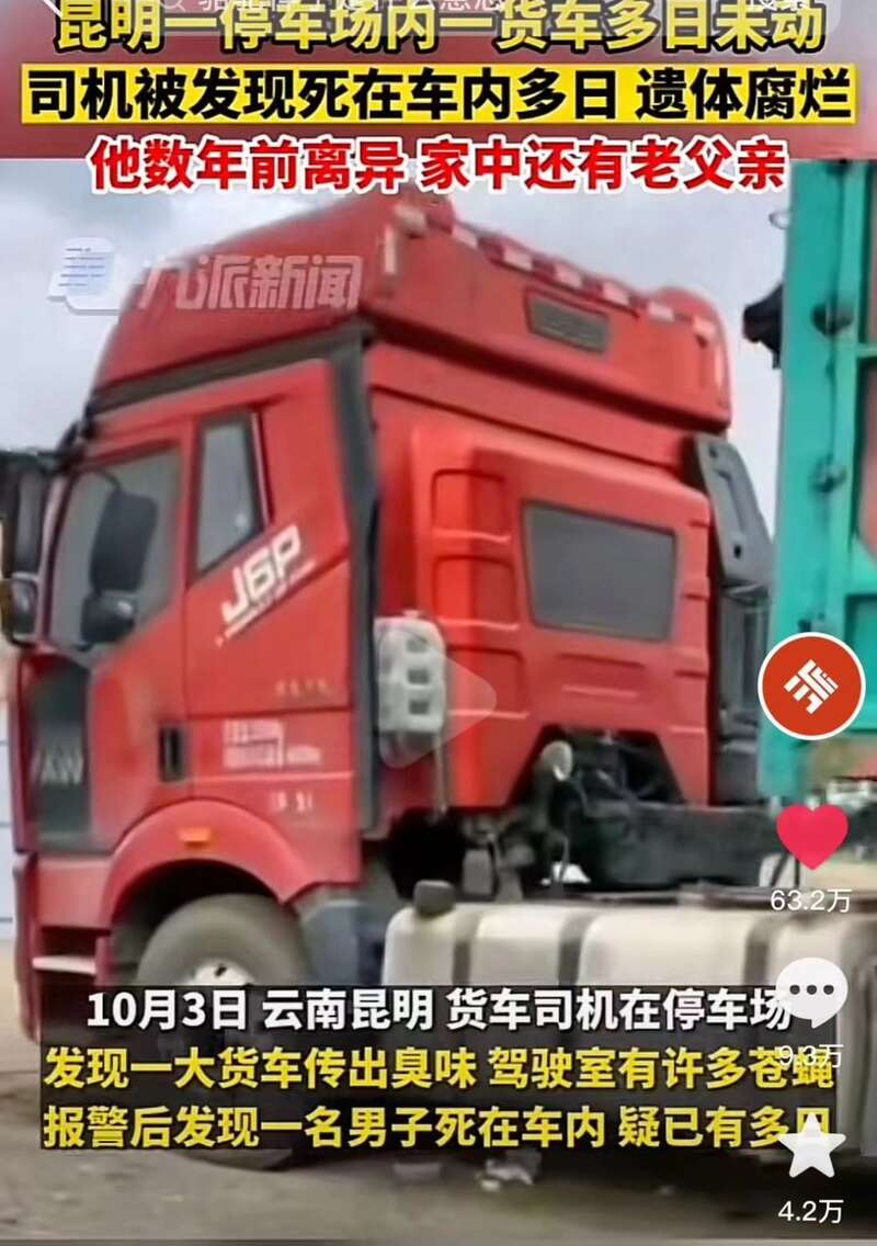 那個連日奔波在路上,最後倒在車內,多日才被發現死亡的貨車司機。