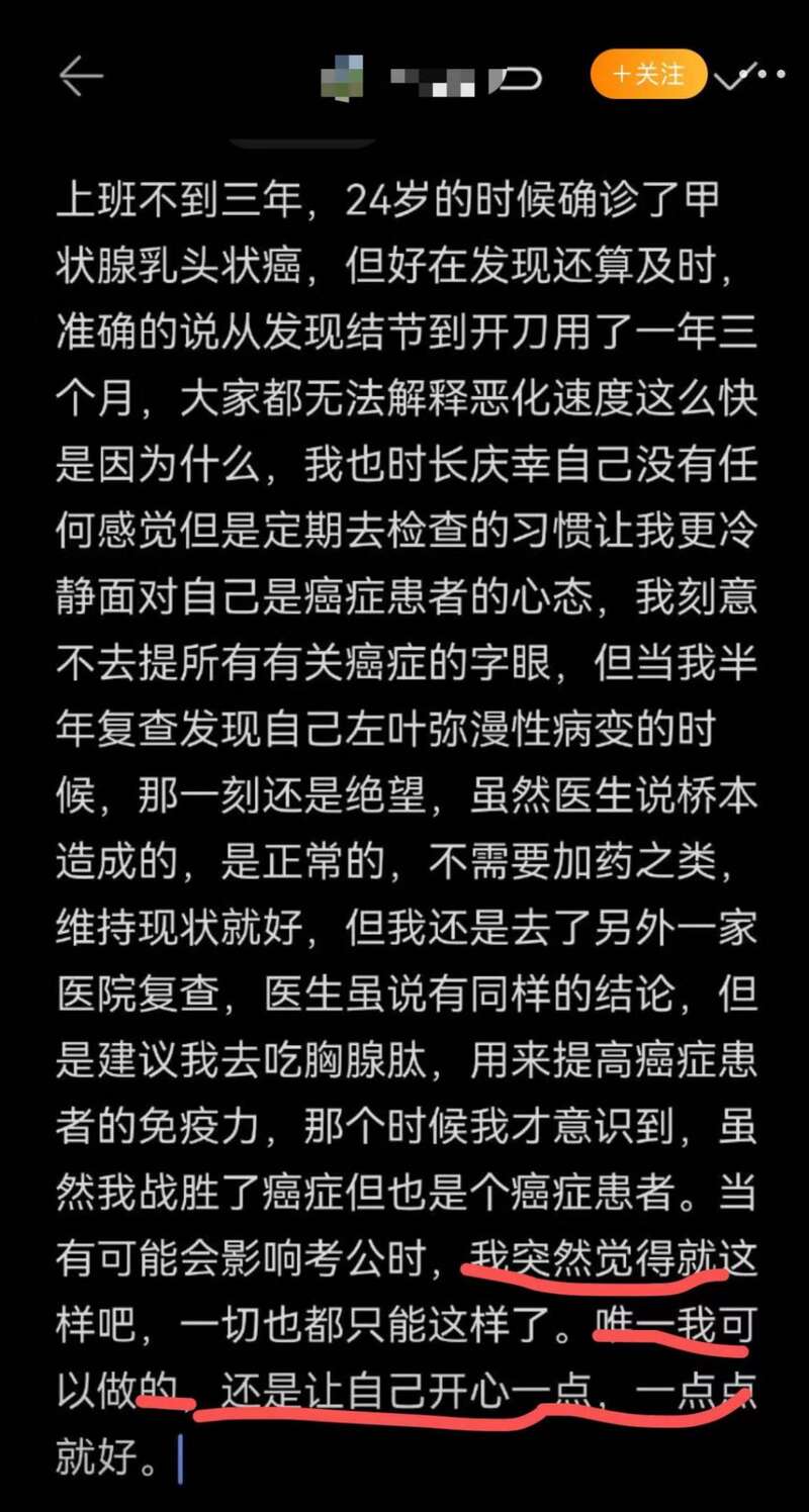 有人在27歲因為甲狀腺乳頭狀癌,失去壹個完整的器官。