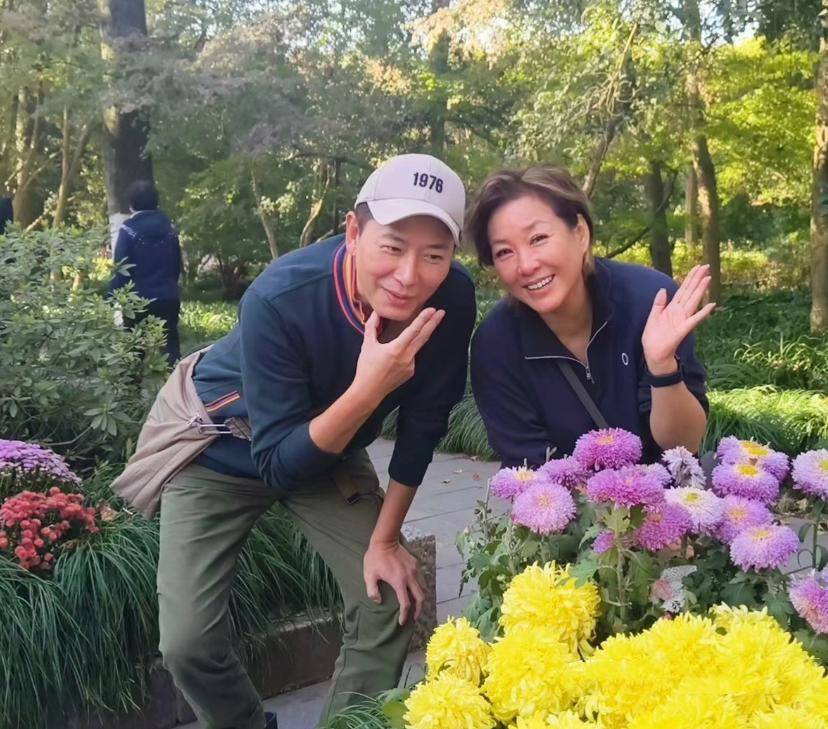 22日,李静去杭州工作,戴军便邀请她去逛植物园、品尝当地美食,两人饭后一起散步合影,氛围超惬意。