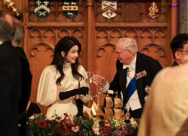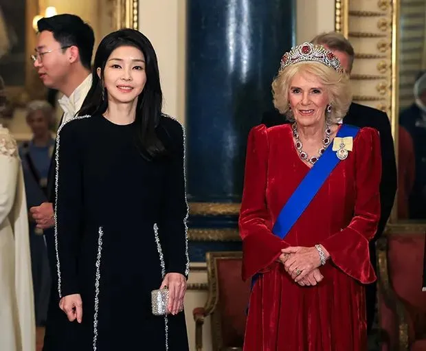抵达英国第一日,在白金汉宫的晚宴上,51岁的金建希站在41岁的凯特王妃旁边一下就引起了大家的热议。