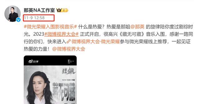 工作室微博,长时间未更新。然央视网文旅,正常宣传,CCTV电视剧,那英片段,