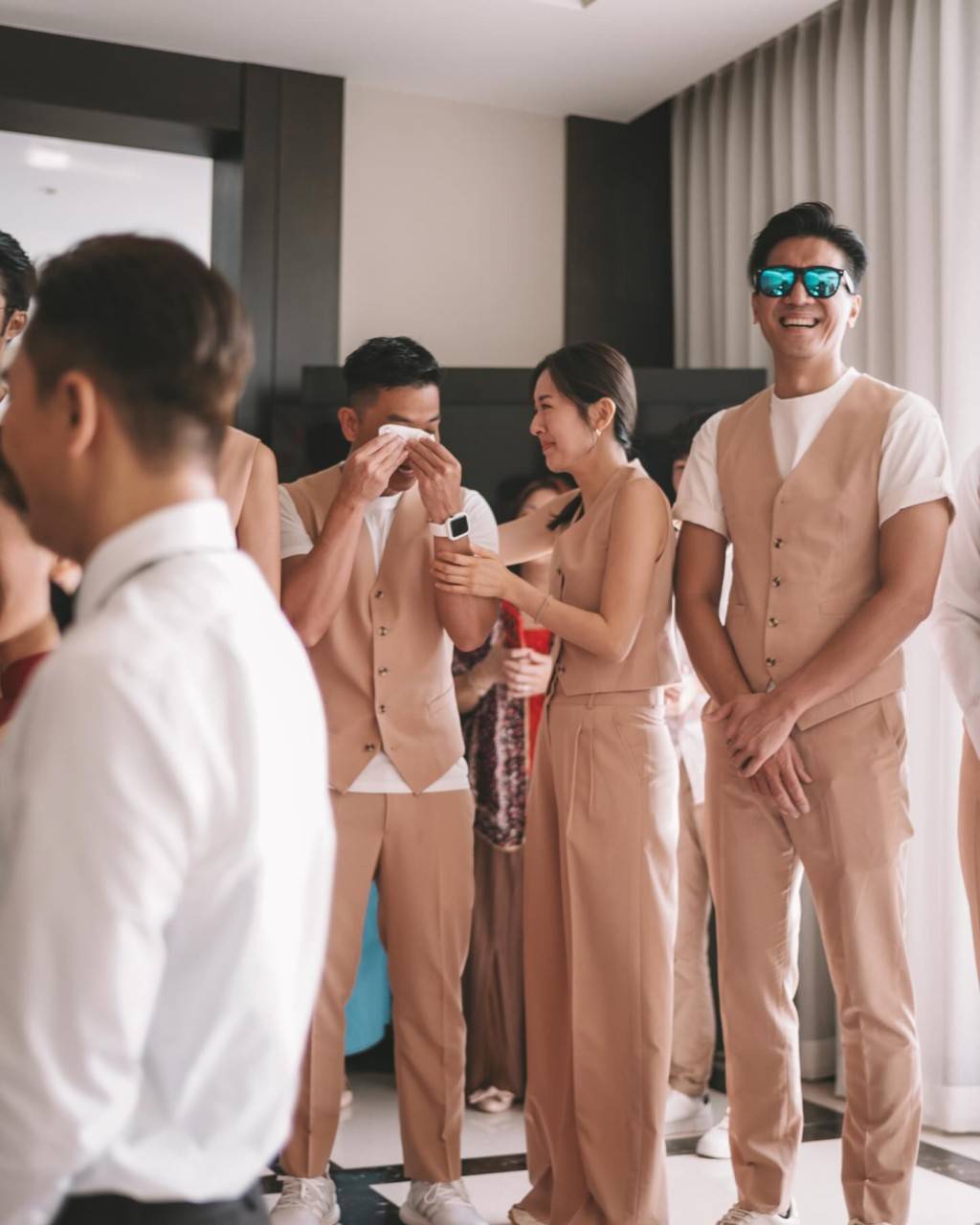 作为新郎的好友,唐诗咏与林子善看到马国明成婚,忍不住当场流泪: