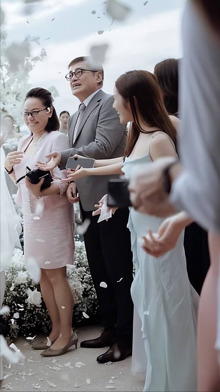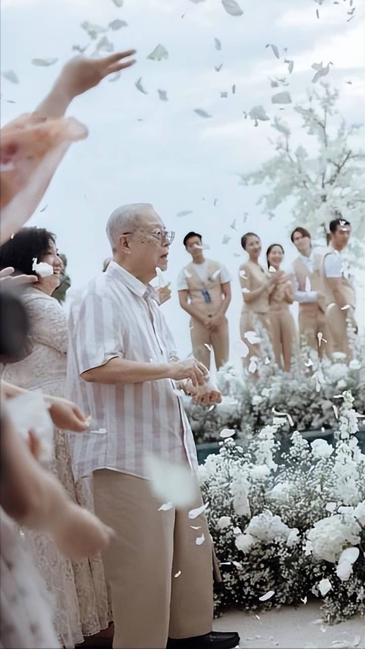 马国明在明年2月就迎来50岁,他的父亲已经年迈,在婚礼上表现也相对严肃,但他站在了人群的最前面,明显为儿子的婚事感到高兴。