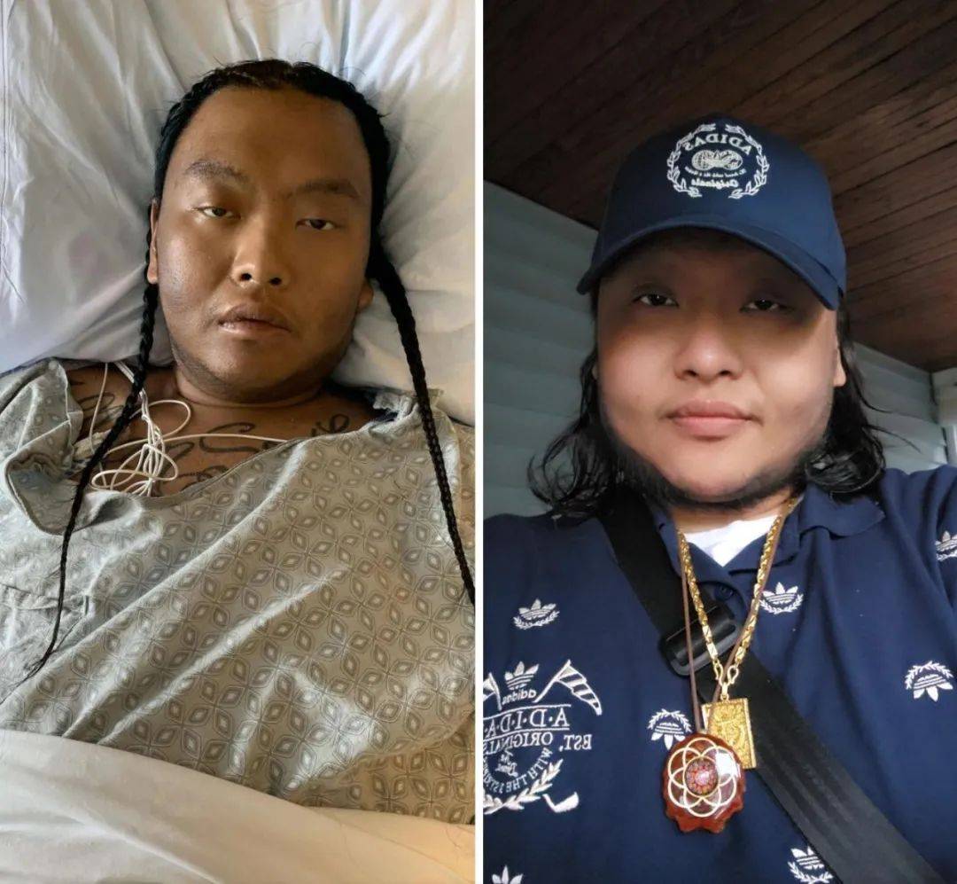 左边是在肝切除术后住院期间,右边是我今年早些时候的照片。