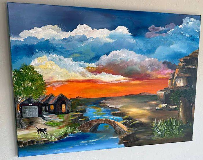 她为我和兄弟姐妹的家画了幅画,画中甚至还有我的狗贾克斯。