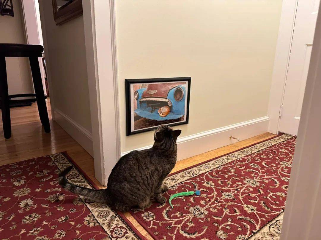显然我不在的时候,我丈夫挂了给小猫看的墙画,太精致了!