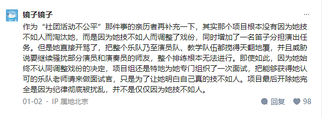 演奏排練中,劉丁寧技不如人,社團剛開始也並沒有淘汰她,而是增加了壹名同學分擔演出。