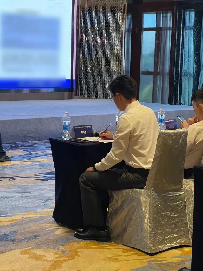 32岁的李瑞戴着黑框眼镜,以一身正装造型在某个行业论坛大会上现身。