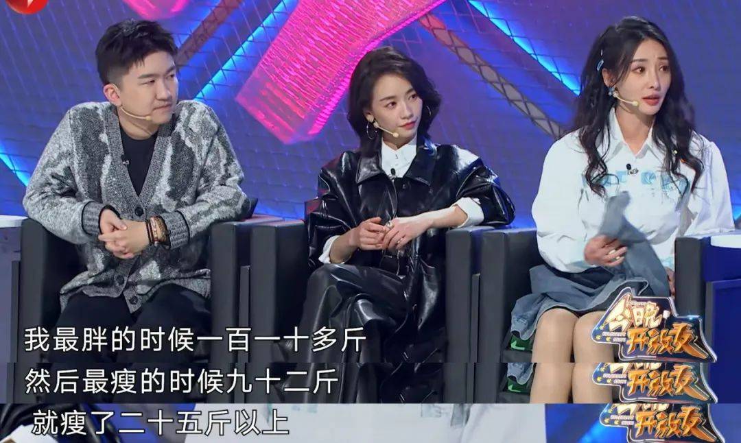 所以上镜的时候,她的体型从丰腴变成了纤瘦,脸也没有那么饱满了,会显法令纹。(下图左为2022年2月节目截图,右图为今年1月节目截图)