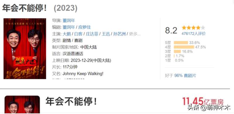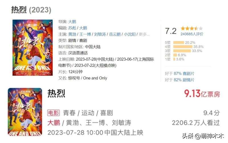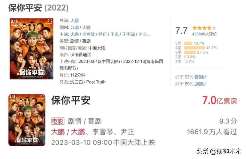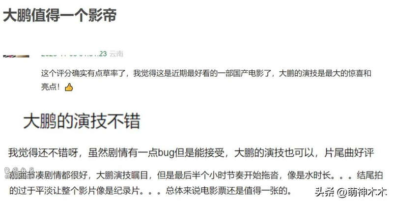 正如網友所言,這壹年對於大鵬而言,的確是意義非凡,充滿了“大鵬壹日同風起,扶搖直上九萬裡”的現實意味。這壹年由他導演、主演的影片都取得了票房和口碑的雙豐收,年初以及年中上映的《保你平安》、《熱烈》都收獲平台7分以上的好成績,還有7億和超過9億的高票房。目前正在映中的《年會不能停!》,這部由大鵬主演的喜劇影片,平台得分穩超8分,票房也飆升至新高度,突破11億。