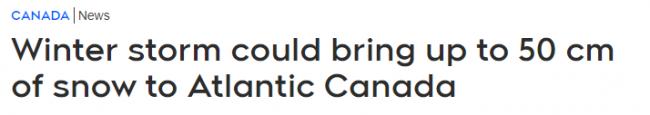 預計紐芬蘭省的降雪量會更大,可能達到30到50厘米,某些地區的降雪量可能會更大。暴風雪預計將從周叁上午壹直持續到周伍早上,最大的講雪將在周叁晚上抵達。該省每小時可能降雪2到3厘米,陣風可達80公裡/小時。