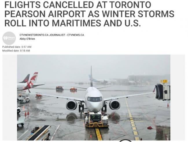 大多倫多地區前往美東或加東的旅客需要確保今天在前往機場之前檢查航班狀態。