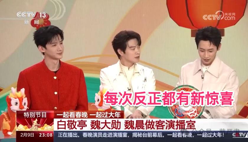 魏晨接话说:“有一次彩排的时候我跟大勋就先说好左边拜年,左边拜完了一回头小白一个人在右边,先给右边的朋友拜完了。他准备往回走我们又把他推回去。”“每次反正都有新惊喜。”