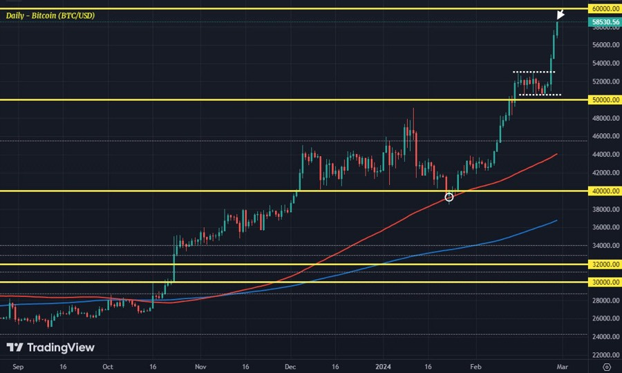 在突破5万美元之后,比特币在过去两周有所巩固。所有这一切都发生在比特币从5.3万美元附近的区间高点强劲突破之前,这又推动了比特币的上涨。这使得技术型交易员现在获得更多优势。