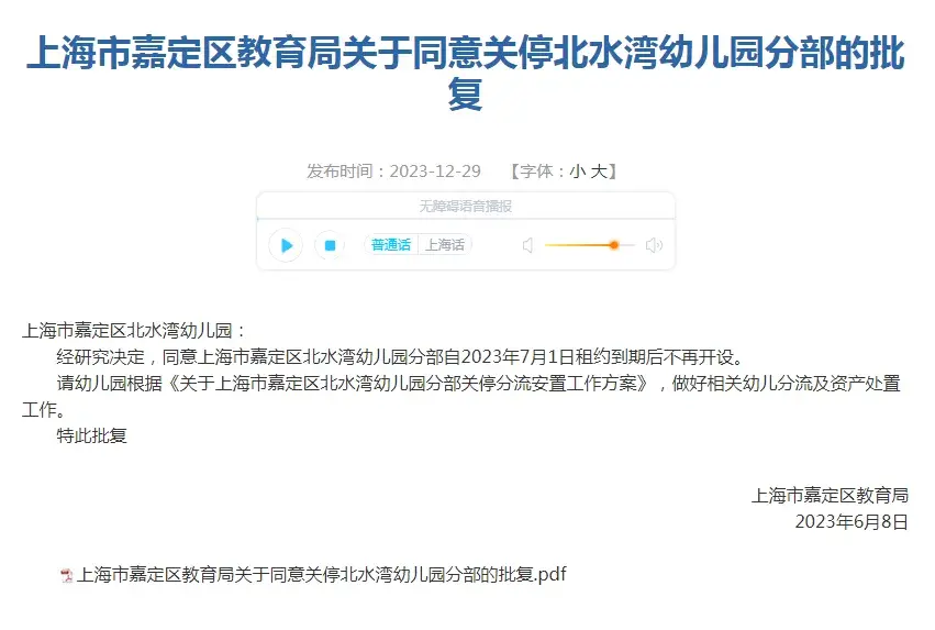 与此同时,上海各个区的幼儿园裁撤并转工作也在上海正式开启。