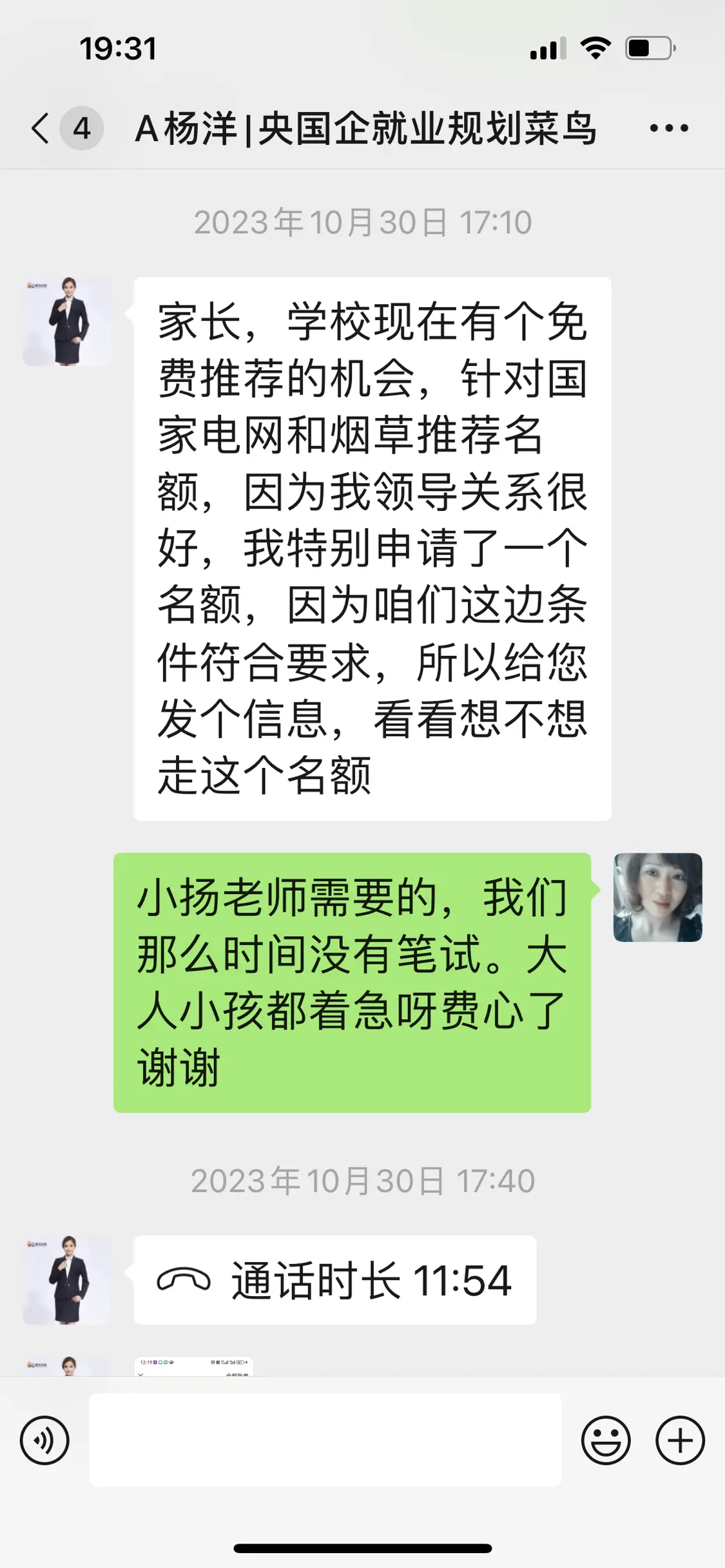 董绮则有点不放心,当时她在微信上询问杨洋。杨洋告诉她,这个班型“主要做的都是电网和烟草”,会对学员进行专项培训:求职电网的,专业课占70%;求职烟草的,专业课占60%。“这个专业课,是由大学的教授亲自给你作辅导。”杨洋说。