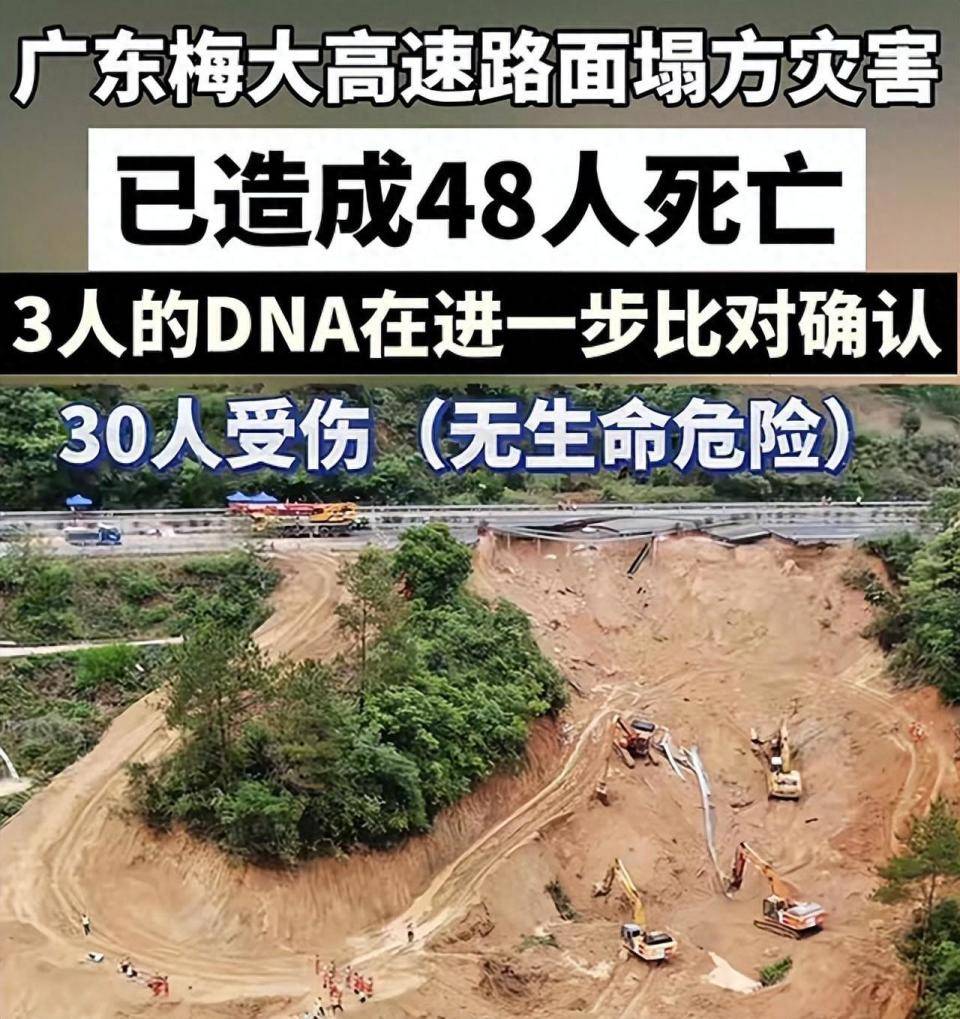 5月1日凌晨2點10分左右,廣東梅大高速茶陽路段出口方向2公裡左右發生塌方事件,因為是凌晨發生的事,傷亡非常慘重,48人遇難,30人受傷。