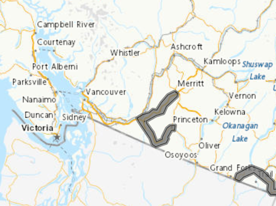 加西網報道:加拿大環境部今天對BC省的3號高速和5號高速發出特別天氣警告。