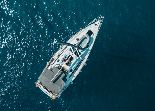 該船只被描述為具有淺藍色船體、帶中央控制台。該船有多個白色舷外發動機,可能有藍色或深藍色底漆。