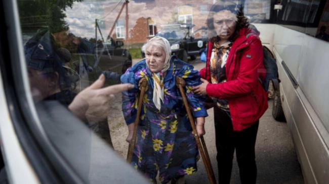 因俄羅斯炮火轟炸,2024年5月12日從烏克蘭東北部哈爾科夫附近撤出的烏克蘭居民。 © Evgeniy Maloletka / AP