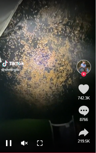 国外一名网友日前在TikTok分享自己露营的短影片,影片中传来“窸窸窣窣”、宛如下雨的声响,网友在帐篷内拿起手电筒一照,发现原来是成千上万只密密麻麻的白蚁在帐棚外振翅拍打帐篷,进行“分飞求偶”。该则影片至今吸引超过900万人次观看,不少人密集恐惧症发作,直呼“世界末日”、来到了“地狱”。