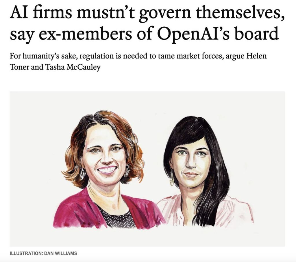 騰訊科技訊 5月27日消息,據國外媒體報道,OpenAI前董事會成員海倫·托納(Helen Toner)和塔莎·麥考利(Tasha McCauley)日前撰文談到了人工智能的監管問題。