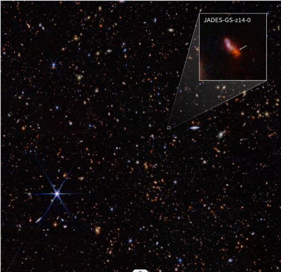 在這項發現之前所知最早星系,是在“大爆炸”後大約3億2000萬年出現的JADES-GS-z13-0,也是由JADES團隊透過韋伯望遠鏡發現的。