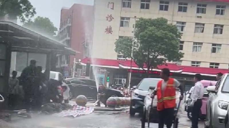 视频是在安徽中医药大学附属铜陵中医院门诊楼对面的大马路上拍摄。马路上人来车往,官方人员就在众目睽睽之下摆拍造假。