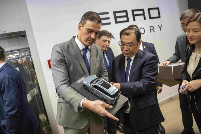 西班牙首相佩德羅·桑切斯會見奇瑞高管張貴兵,見證這家中國汽車制造商與西班牙汽車品牌Ebro成立合資公司。圖片來源:LORENA SOPÃ(TM)NA/ZUMA PRESS