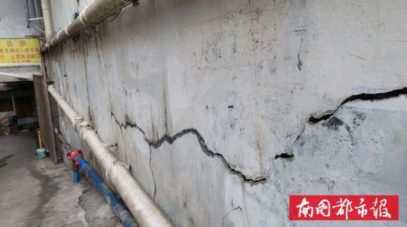 富驊大廈牆體開裂處可以平放進壹只成人手掌。