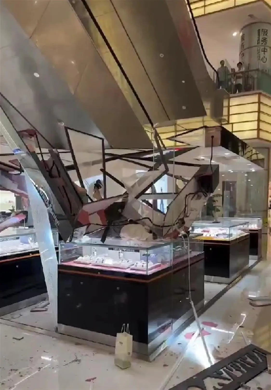 現場視頻顯示,在壹商場內,壹樓壹處櫃台出現多處垮塌,視頻中壹女子表示,之心城有人墜樓了。另有壹段現場監控視頻顯示,在商場內的扶梯上,壹男子突然翻下墜落,監控視頻時間顯示為下午5時49分。其中壹名視頻發布者配文稱:“合肥之心城有人墜樓。”