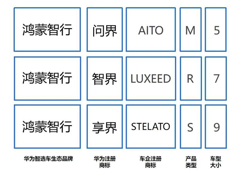 所以,雖然華為把持著問界、智界、享界等“界字輩”商標,但這些不是汽車真正的品牌名。問界真正的品牌名是AITO,智界是LUXEED,享界STELATO。