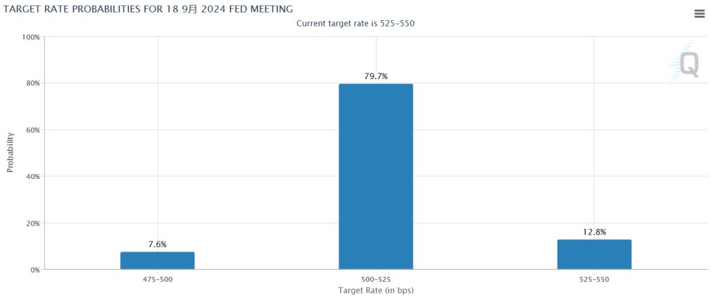 据CME的美联储利率观察工具显示,美联储在9月的会议上降息的可能性冲高至近90%,高于报告发布前预期的80%。