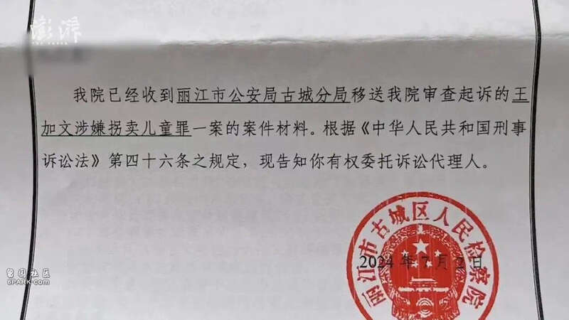 7月10日,澎湃新闻记者从云南大理李聪被拐案受害家庭处获悉,丽江市古城区人民检察院于7月2日向被拐儿童李聪送达了《委托诉讼代理人告知书》。