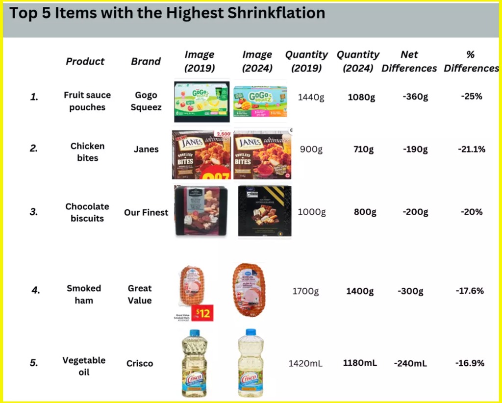 (加西网综合)“收缩通货膨胀”是加拿大各地消费者熟悉的术语之一,因为在过去几年中,加拿大人一直在质疑食品杂货价格和超市利润的不合理飙升。但哪些产品“缩水”最严重大?