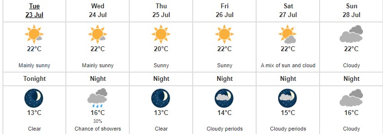 溫哥華國際機場仍在等待今年 7 月的降雨量,該月前幾周的降雨量為 0 毫米。溫哥華市本月出現降雨的最佳機會是周肆,降雨的概率為 40%。