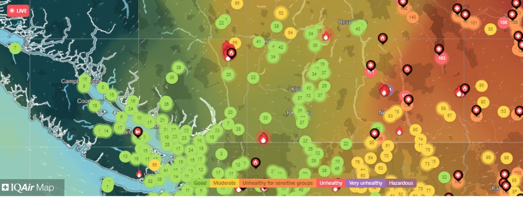 目前,預測西風轉移應該會改善奧肯那根山谷和湯普森-尼古拉地區的空氣質量,但BC省東南部火災下游地區的空氣質量會有所改善。預計當地空氣質量仍然較差。