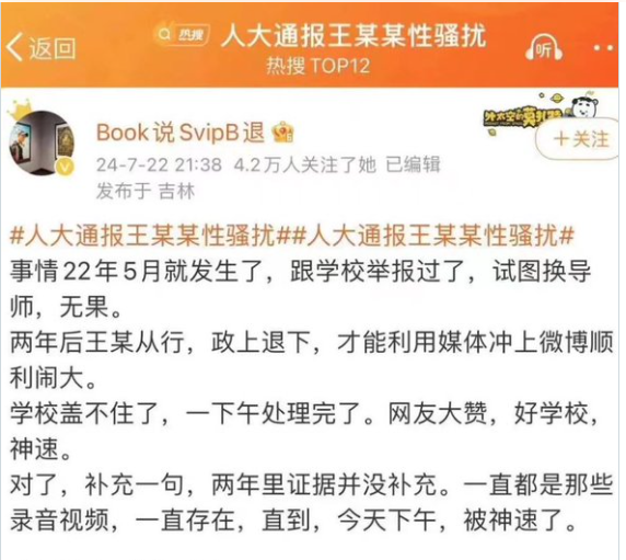 中國人民大學的人大文學院原黨委書記王貴元性騷擾案件的真相:兩年前女博士生就舉報他了,完全相同的證據,當時告不倒。