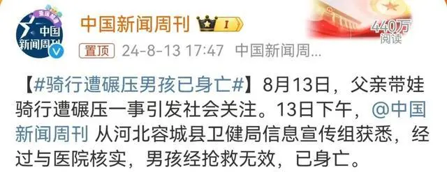 8月13日,“父亲带孩子骑行遭碾压”一事引发社会关注。