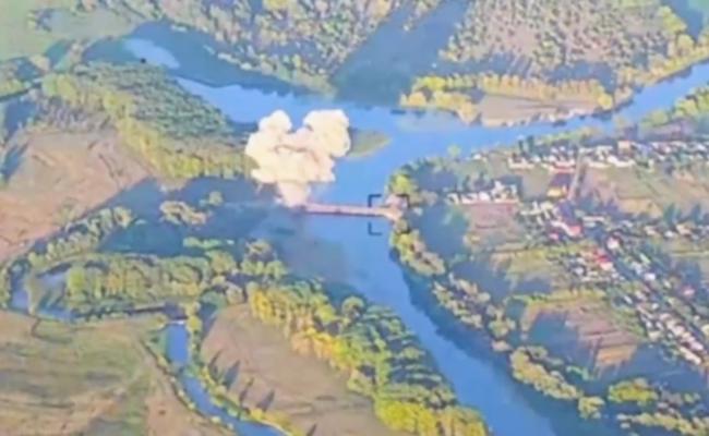 烏克蘭空軍參謀長米科拉·奧萊什丘克中尉周伍發布了壹段烏克蘭空襲將大橋炸成兩半的視頻。