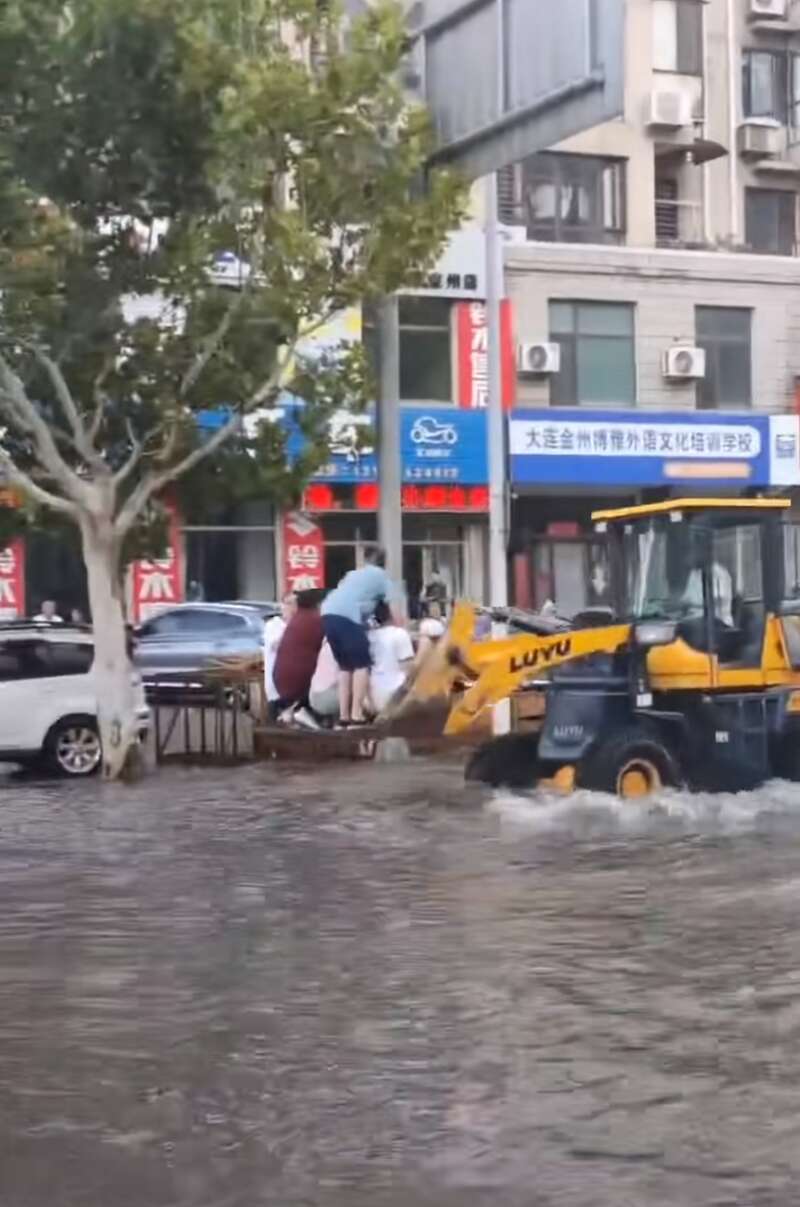 挖掘机帮市民过积水路段。图/受访者提供