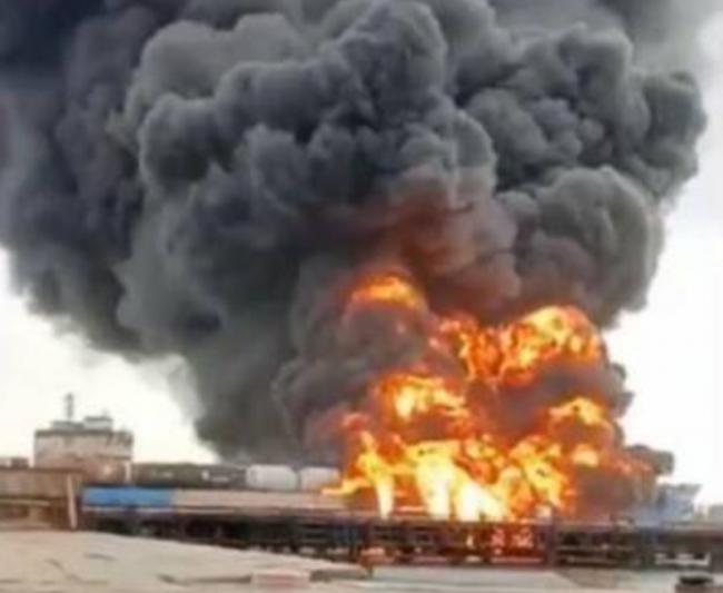俄軍機場油庫、彈藥庫遭到無人機攻擊,烈焰沖天,據稱現場有多架戰機被毀。 圖 : 翻攝自NOELReports