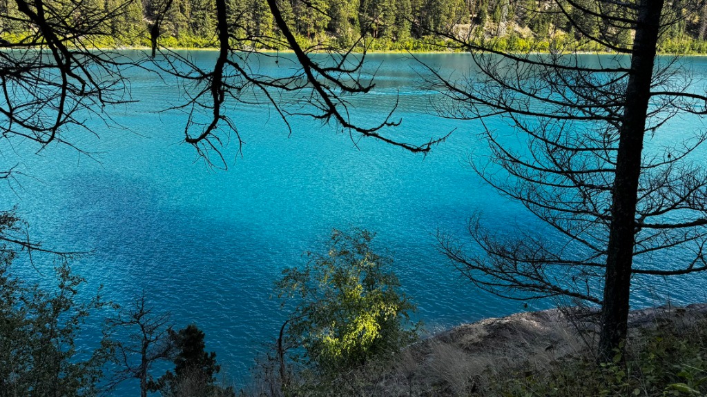Kentucky-Alleyne省立公园距离温哥华约300公里,离Merritt不到30分钟的车程,Kentucky湖和Alleyne湖相隔不远,波光粼粼,蓝绿色的湖水不负”果冻湖”之美誉。