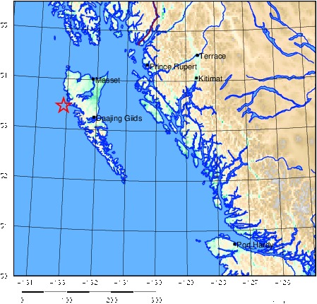 (加西網簡訊)BC省緊急信息中心稱,周贰晚上海達瓜伊(Haida Gwaii )附近發生了 4.2 級地震,有輕微震感。