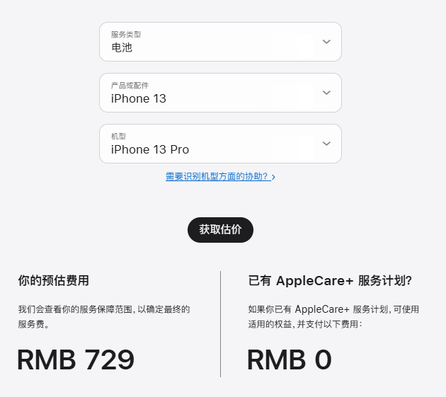 果子去官網看了下現在 13 Pro 換電池的價格...