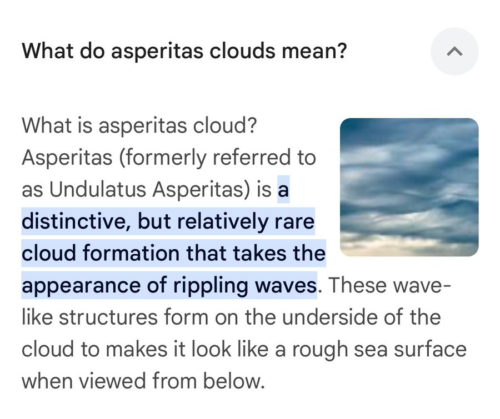 這些雲被稱為 asperitas 雲,以其獨特的形狀而聞名,看起來像漣漪般的波浪。
