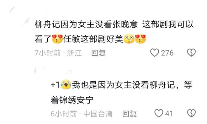 到現在新劇的預告下,還有網友說,因為女主沒看《柳舟記》。