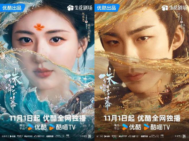 电视剧《珠帘玉幕》领衔主演赵露思、刘宇宁角色海报。