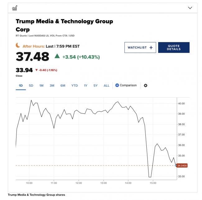 隨著周贰有爭議的總統競選活動投票結束,前總統唐納德·川普的媒體公司股價上漲。