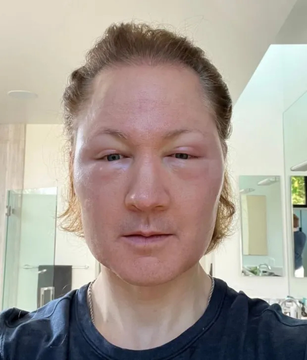 很難相信這就是現在的約翰遜,面部腫脹得有些駭人,雖說之前倒也不至於很帥,但和現在的模樣比起來,那個時候堪稱“驚艷”了。